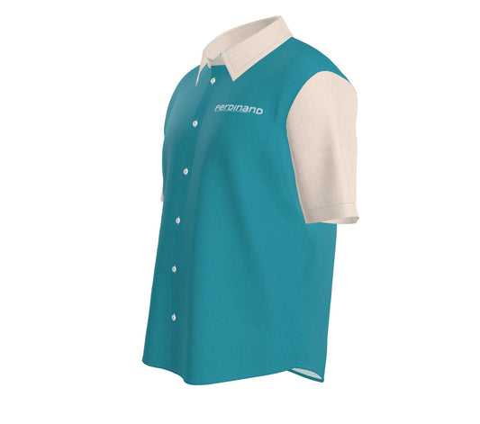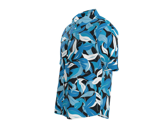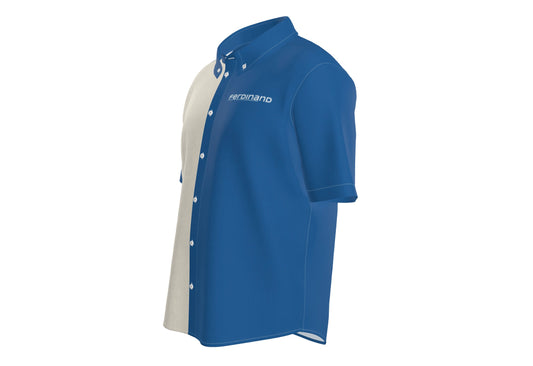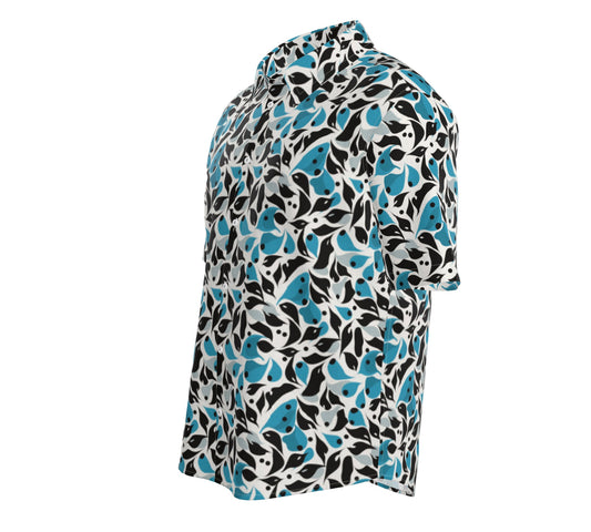Mens Short Sleeve Active Button Down, Cream on Blue with Button Down Collar