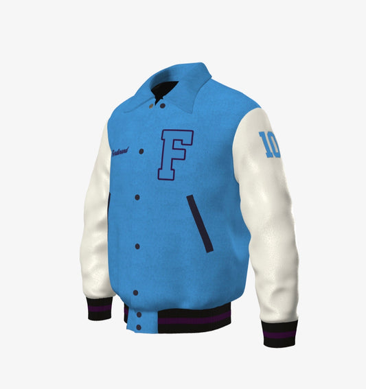 FEWR Varsity Jacket in Blue, Cream and Purple - Blueberry (ii)